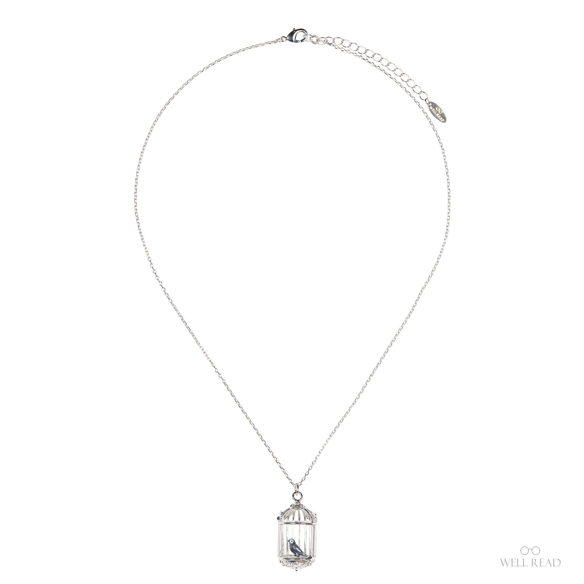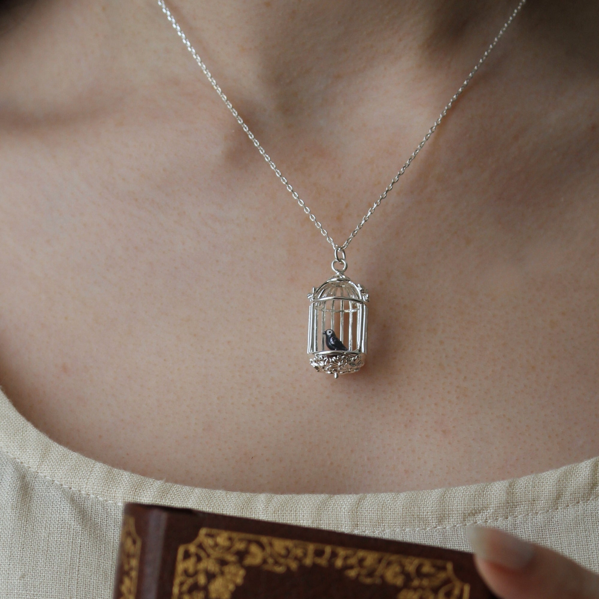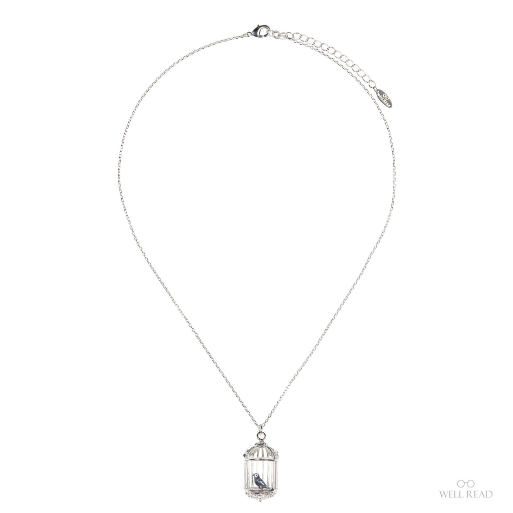 The pendant's filigreed bars and domed top evoke Victorian ornament, while the little bird suggests resilience, self-possession, and the pull between confinement and freedom at Thornfield. Suspended from a lightweight, adjustable silver chain, it layers beautifully and sits comfortably for all-day wear—equally at home with a high-collared blouse or a cozy sweater.